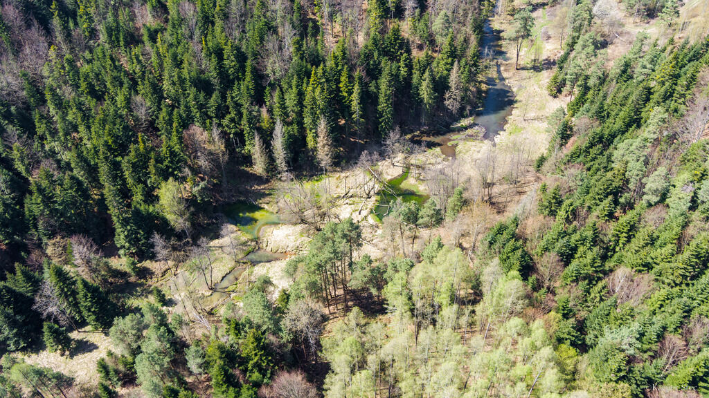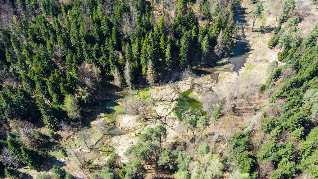 Jamna i Kąśna. W granicach większej działki przepływa potok,
